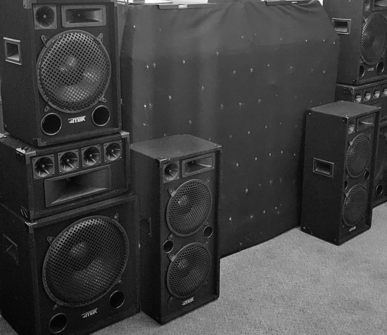 - My standard Disco setup includes the professional stand/booth, lighting and amplified speakers (Picture of my various setups through the years will be included on this sight). My setups vary depending on the event, client and hire requirements.